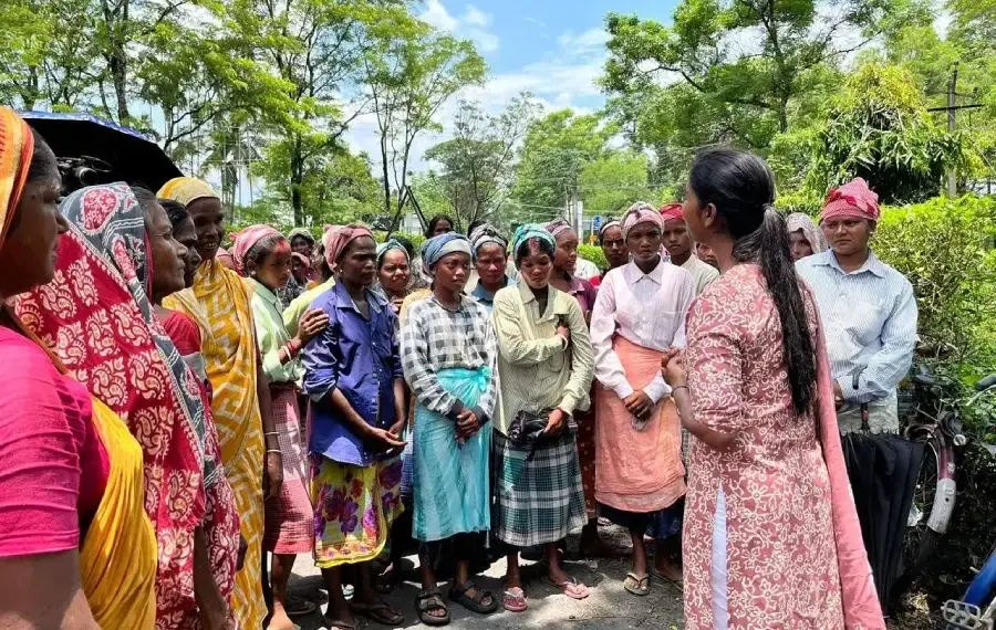 सैनिटरी पैड से लैस प्रीति मिन्ज, जो उरांव आदिवासी समुदाय से संबंध रखती हैं, पश्चिम बंगाल के जलपाईगुड़ी जिले के चाय बागानों का दौरा करती हैं। औपनिवेशिक काल से अपने चाय बागानों के लिए प्रसिद्ध पश्चिम बंगाल के उत्तरी भाग में स्थित इस ज़िले में लगभग 185 बागान हैं। लेकिन इनमें से अधिकांश में शौचालय सुविधाओं के अभाव के कारण, चाय की पत्तियां तोड़ने वाली महिला मजदूर सुबह से शाम तक काम करती हैं। मासिक धर्म के दौरान यह स्थिति गंभीर स्वास्थ्य समस्याएं पैदा करती है, क्योंकि उन्हें लंबे समय तक टॉयलेट/बाथरूम का उपयोग करने का अवसर नहीं मिलता।